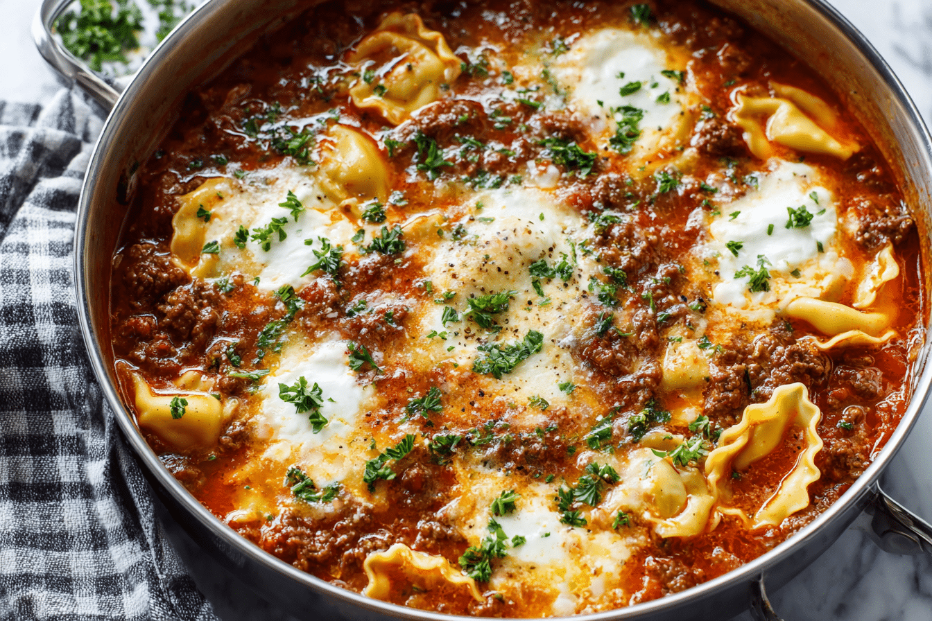 This easy 30-minute lasagna soup packs all the flavor of classic lasagna into a cozy, one-pot meal. With savory meat, rich tomato broth, tender pasta, and a melty ricotta topping — it’s comfort food made fast.