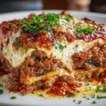 If you’re looking to elevate classic lasagna into something a little more refined and vegetable-forward, this eggplant layered individual Italian lasagna with ground meat sauce is a must-try. Swapping traditional pasta sheets with tender slices of roasted eggplant creates a lighter, gluten-free alternative that’s just as comforting and satisfying.