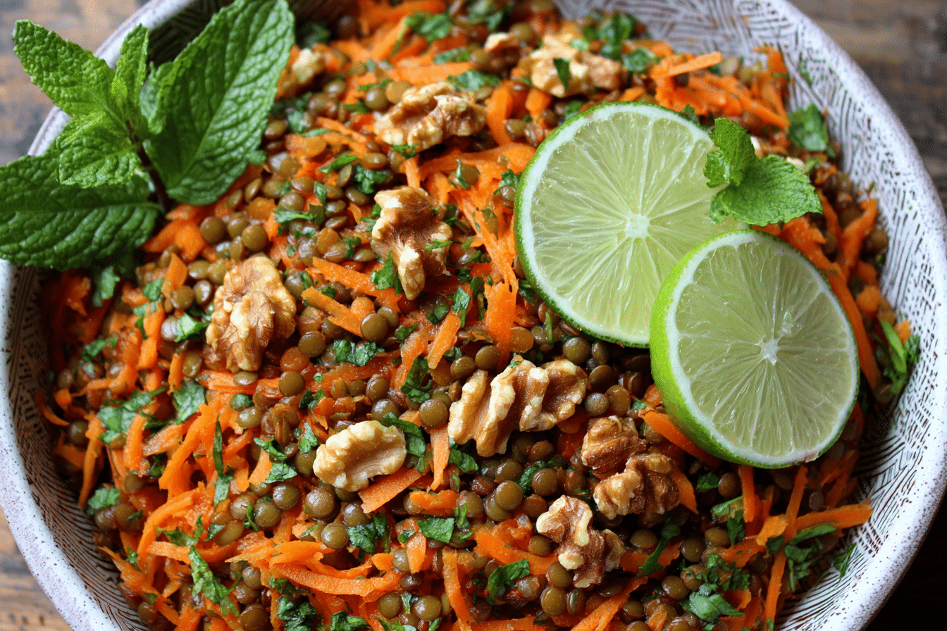 A hearty and flavorful Moroccan-inspired salad made with lentils, carrots, warm spices, and fresh herbs. Perfect as a side or light vegetarian main.