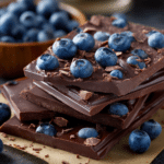This treat fits perfectly during warm weather when lighter desserts feel appealing. A thin layer of melted chocolate spread across a tray becomes the base, while fresh or dried blueberries add color, flavor, and pleasant texture. After chilling, the slab hardens into a crisp sheet that snaps into irregular pieces.