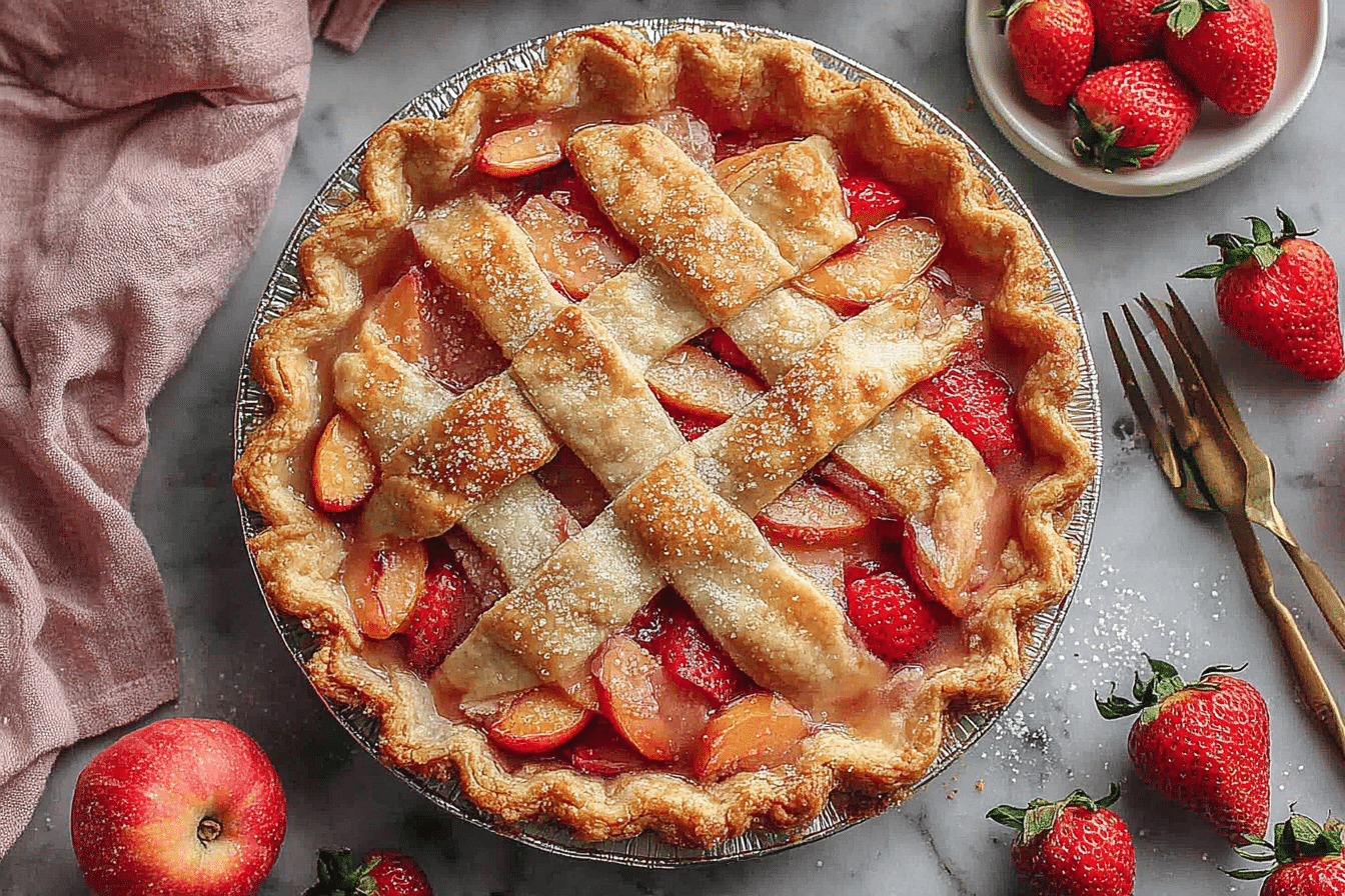 PrintBrown Butter Strawberry Peach Pie Recipe for Summer Desserts