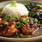 Caramelised Soy Chicken in Garlic Ginger Broth with Rice is an umami-rich, deeply aromatic dish that brings together sweet, salty, and savory flavors in perfect harmony. Tender chicken thighs are pan-seared and coated in a sticky soy glaze, then simmered in a gingery, garlicky broth that soaks beautifully into fluffy white rice. It’s a soul-warming meal that tastes like something you’d order at your favorite Asian fusion restaurant — but it’s easy enough to make at home in under an hour.