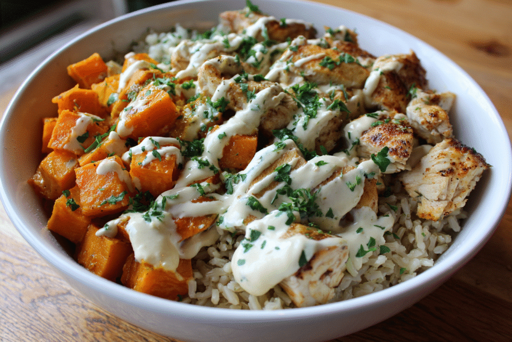 Looking for a nourishing, filling, and flavorful meal that ticks all the boxes? This Healthy Chicken & Sweet Potato Rice Bowl is a complete meal in one bowl — high …