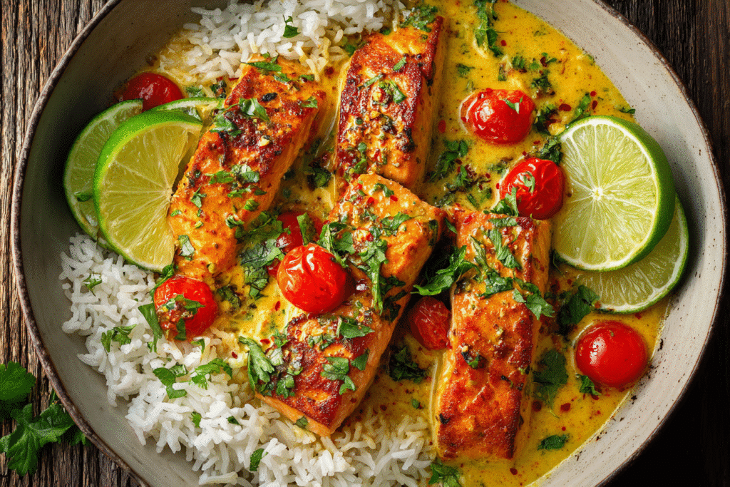 Bold, creamy, and surprisingly easy — this One-Pan Coconut Curry Salmon with Garlic Butter is a luxurious yet simple dish that’s packed with warming spices and melt-in-your-mouth texture. Fresh salmon …