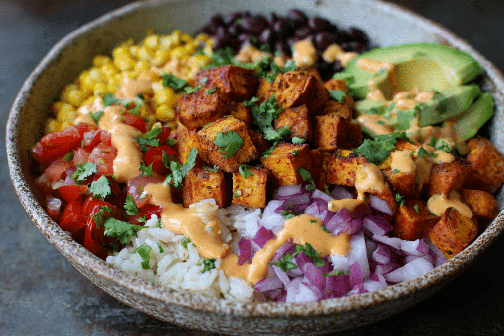 When bold flavor meets nourishing ingredients, magic happens—and this Vegan Sweet Potato Burrito Bowl recipe is proof. Packed with roasted sweet potatoes, black beans, rice, avocado, and a zesty lime …
