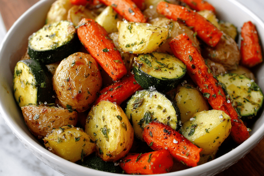 This Garlic Herb Roasted Potatoes Recipe with Carrots and Zucchini is a cozy, colorful medley of crispy edges, tender centers, and herby goodness. It’s a versatile one-pan side dish that …
