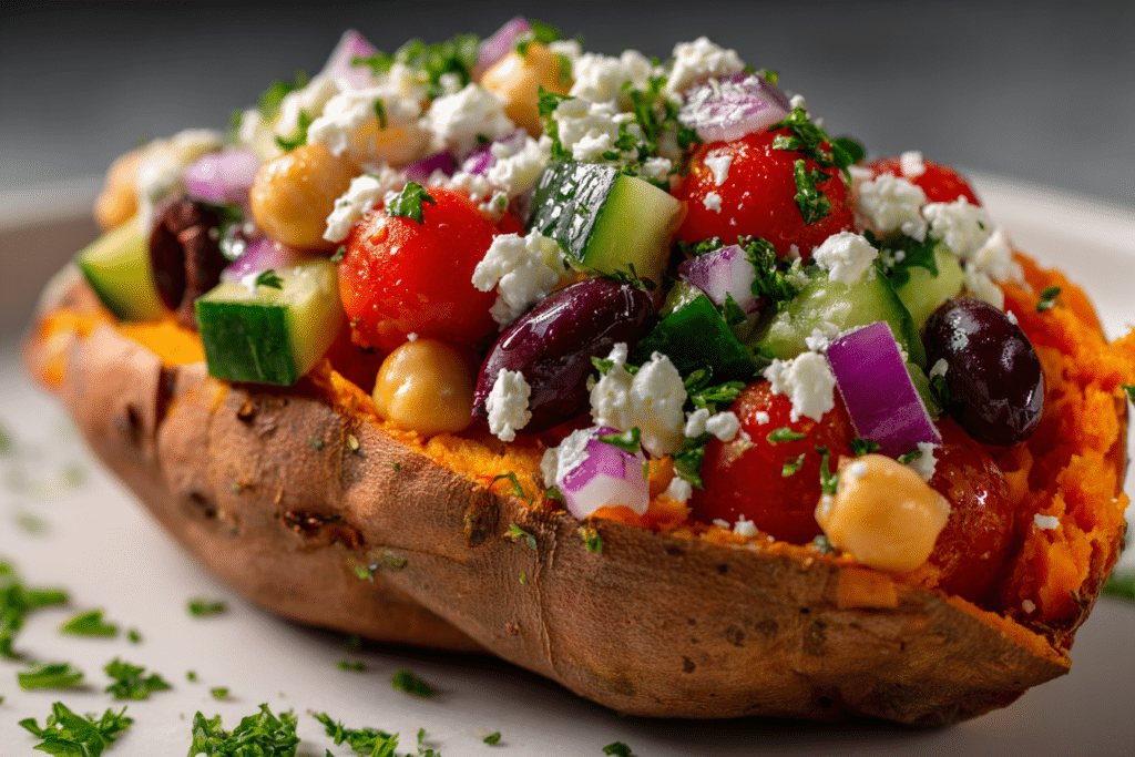 Mediterranean Stuffed Sweet Potatoes are the kind of meal that feels like comfort food but tastes like a trip to the coast. Soft, caramelized roasted sweet potatoes are filled with …