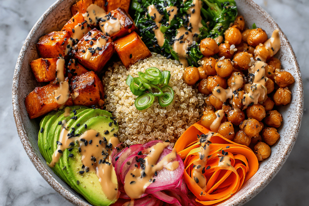 The Miso Sweet Potato Power Bowl is a vibrant, plant-based meal that brings together earthy roasted sweet potatoes, savory miso dressing, fresh vegetables, and protein-packed grains into one wholesome, energizing …