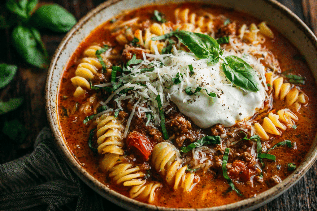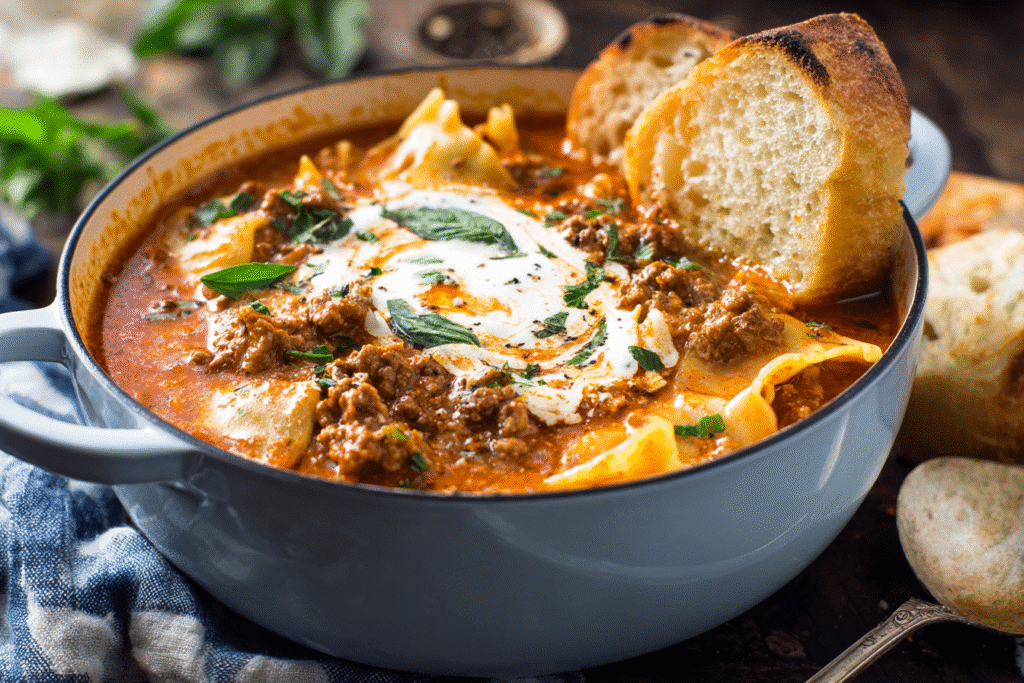 This Lasagna Soup takes everything you love about classic baked lasagna — rich tomato sauce, savory meat, tender noodles, and melty cheese — and turns it into a satisfying one-pot …