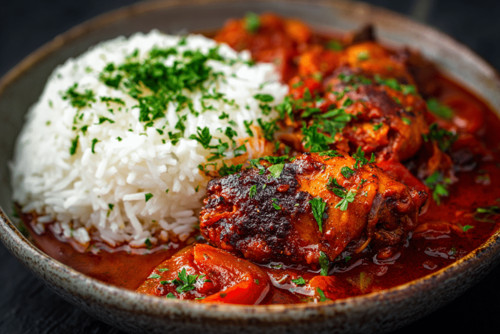Spicy Nigerian Chicken Stew – West African Flavor is a rich, vibrant dish known for its bold red color and deeply layered heat. Built on a base of fresh tomatoes, …