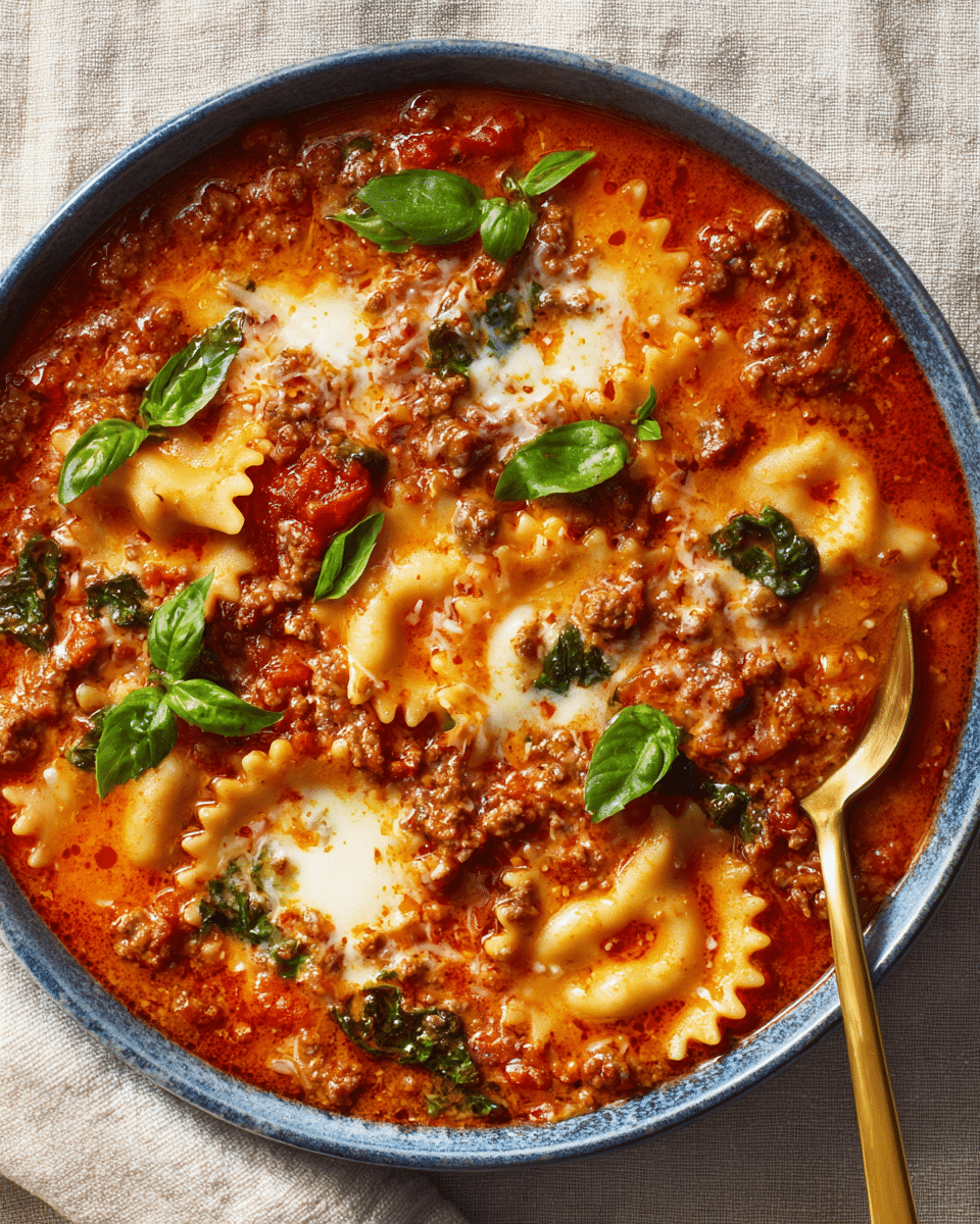 PrintCheesy Lasagna Soup Recipe – Cozy Fall Comfort Food