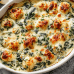 The casserole layers creamy sauce, cheese, and cooked spinach, baked to perfection until the top is golden and bubbling. The combination of cheese, cream, and subtle seasonings makes it indulgent without being overpowering, while breadcrumbs on top provide a satisfying crisp contrast to the creamy interior.