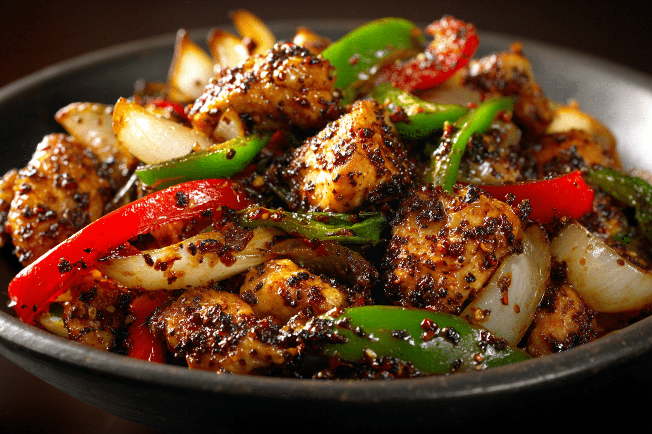 Often found in Chinese-American kitchens and weeknight dinner rotations alike, Black Pepper Chicken delivers a satisfying balance of heat, saltiness, and subtle sweetness. The chicken remains juicy while onions and bell peppers add texture and brightness.