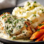 Creamy Herb Chicken with Mashed Potatoes & Glazed Carrots: A Complete Comfort Food Dinner brings together tender poultry, velvety potatoes, and glossy carrots in a meal that feels deeply satisfying from the very first bite. This dish centers on a rich cream sauce scented with garlic and fresh herbs, gently coating golden-seared chicken breasts.