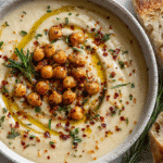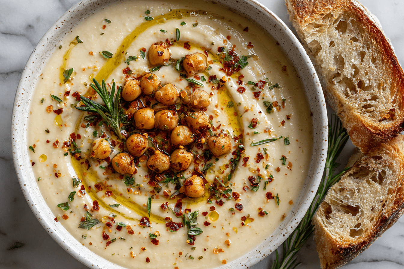 A creamy, nourishing chickpea soup infused with garlic and herbs. Vegan, protein-packed, and perfect for cozy nights or make-ahead meals.
