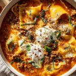 This Lasagna Soup brings all the beloved flavors of traditional lasagna — meaty sauce, tender pasta, savory herbs, and gooey cheese — into a warm, cozy bowl of soup. It’s the perfect cold-weather meal: hearty, comforting, and much easier to make than layering a full lasagna.