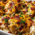 Crack Chicken is a creamy, cheesy, bacon-loaded chicken dish that’s as addictive as its name implies. Rich with ranch flavor and packed with tender shredded chicken, this comfort food classic is perfect for sandwiches, wraps, dips, or spooned straight over rice or pasta.
