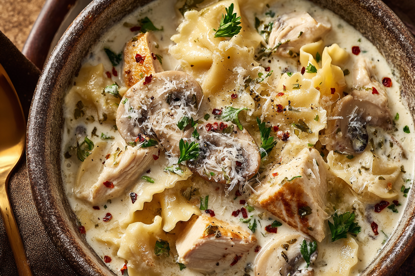 Creamy Chicken Lasagna Soup combines shredded chicken, tender noodles, garlic-Parmesan cream sauce, and melty cheese in a rich, soul-warming bowl—everything you love about white lasagna, no layering required.