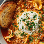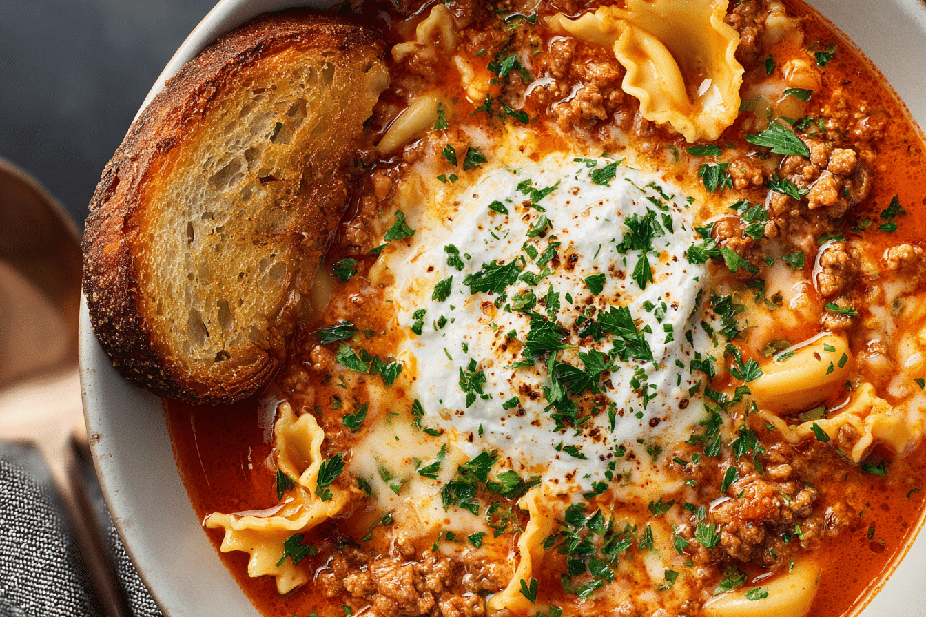 Lasagna Soup transforms everything you love about traditional lasagna—meaty sauce, tender pasta, melty cheese—into a warm, soul-satisfying bowl of soup. It’s rich, comforting, and ready in a fraction of the time it takes to layer and bake a full lasagna. You still get the bold tomato flavor, savory beef, and cheesy goodness, just in a spoonable, slurp-worthy form.