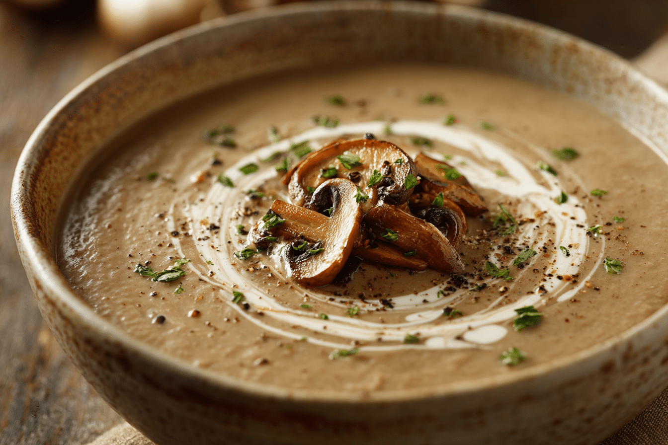 Rustic version: Skip blending tomatoes and keep the soup broth-based with just mushrooms and herbs.