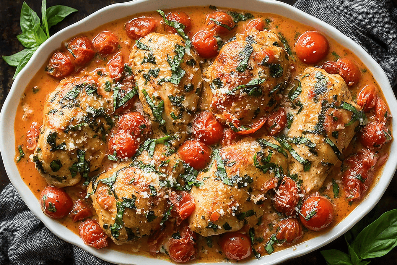 Creamy tomato basil chicken works well served over pasta, rice, or even mashed potatoes. It is also suitable for meal prep since the sauce continues to develop flavor as it rests. Each serving delivers a smooth combination of savory tomato, herbs, and tender chicken that blends together naturally in every bite.