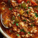 If you love classic stuffed peppers but don’t want the hassle of coring, stuffing, and baking them, this easy stuffed pepper soup is your perfect shortcut. It takes all the hearty goodness of the traditional dish — ground beef, sweet bell peppers, tomatoes, and rice — and transforms it into a cozy, one-pot meal that’s ready in under an hour.