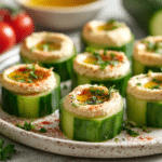 Cucumber and Hummus Bites are the kind of simple appetizer that feels light, crisp, and satisfying from the very first bite. Cool cucumber slices form the perfect base for creamy hummus, creating a refreshing contrast in both texture and flavor. With minimal ingredients and no cooking required, this dish comes together quickly yet looks polished enough for entertaining.