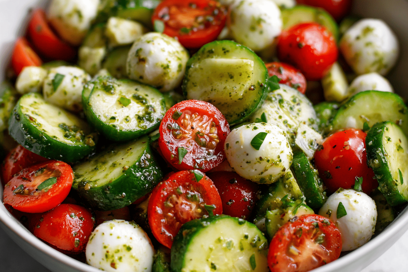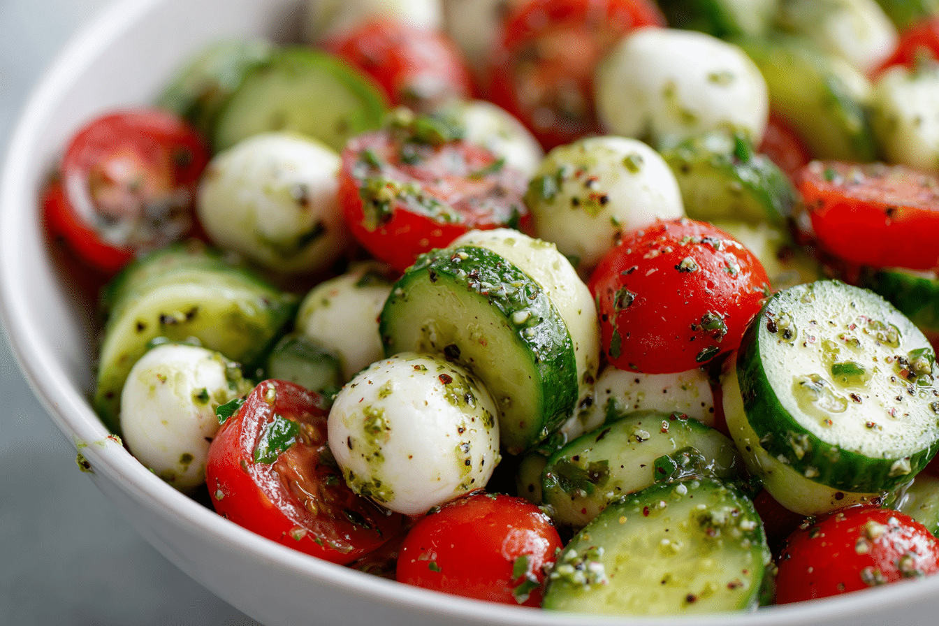 Whether you’re serving it at a summer gathering or setting out a simple weeknight dinner, Easy Cucumber Caprese Salad offers color, contrast, and clean flavor in every forkful. It proves that a handful of fresh ingredients can create something memorable.