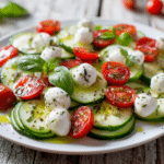 Easy Cucumber Caprese Salad is a crisp, colorful, and healthy twist on the classic Italian Caprese. Combining fresh cucumbers, ripe tomatoes, creamy mozzarella, and aromatic basil, this salad is both light and bursting with flavor. A drizzle of olive oil and balsamic glaze ties the ingredients together, creating a refreshing dish perfect for lunch, dinner, or as a vibrant side at gatherings.