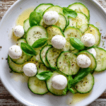 Quick Cucumber Mozzarella Salad pairs beautifully with grilled meats, pasta dishes, or light sandwiches. Serve as a starter, side dish, or refreshing lunch option. Perfect for picnics, summer parties, or weekday meals, it’s easy to assemble and visually appealing.