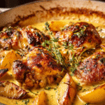 If you’re craving something hearty yet elegant, this French Chicken Casserole is the ultimate answer. With tender bone-in chicken simmered in a rich white wine and herb sauce, nestled alongside carrots, mushrooms, and onions, this one-pot wonder captures the rustic charm of French countryside cooking. It’s cozy, deeply flavorful, and perfect for everything from weeknight dinners to dinner party centerpieces.