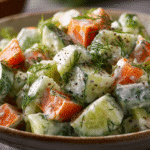 Creamy Cucumber and Carrot Salad is a light, crisp, and satisfying side dish perfect for warm days, quick lunches, or backyard meals. With crunchy cucumbers, sweet shredded carrots, and a tangy, creamy dressing, this salad offers a refreshing contrast to grilled meats, spicy foods, or heavier dishes.