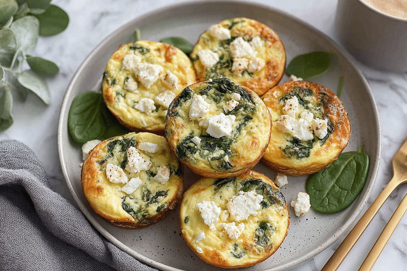 Quick and healthy egg muffins with spinach and feta, gluten-free, perfect for breakfast, brunch, or snacks.