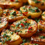 Crispy baked garlic butter potatoes tossed in olive oil, fresh herbs, and cooked to golden perfection. A rustic, flavorful side dish that works for any meal.