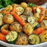 This dish is perfect for busy days when you want something wholesome without complicated steps. The vegetables roast alongside the potatoes, absorbing the seasoning and developing a lightly crisp exterior with a soft, satisfying center.