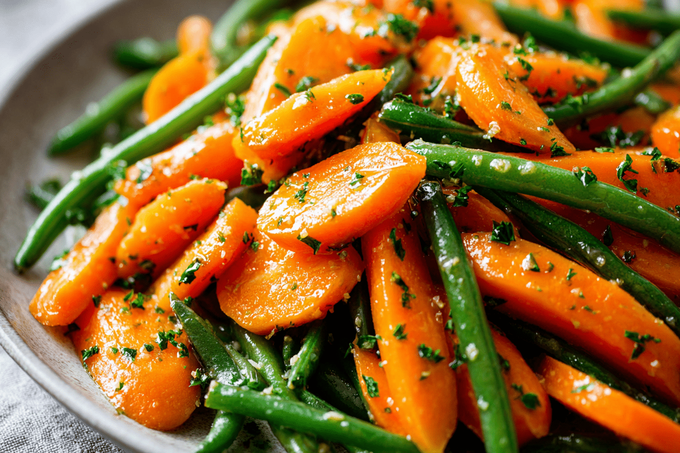 Honey Glazed Carrots & Green Beans bring together tender vegetables and a glossy, lightly sweet coating that feels both comforting and balanced. The natural sweetness of carrots deepens as they cook, while green beans retain a gentle snap that contrasts beautifully with the soft texture of the glaze.