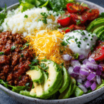 This burrito bowl is built from layers of protein, veggies, and flavor. Here’s what goes into it, with suggestions for variations: