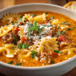 A fun, cozy lasagna-inspired soup loaded with pasta, savory meat, tomato-rich broth, and melty cheese. Perfect for cold nights and family dinners.