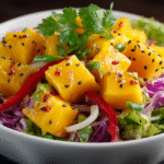A1: Yes, you can prep the mango and vegetables a few hours ahead and store them separately in the fridge. However, it’s best to dress the salad just before serving to maintain the crisp texture.