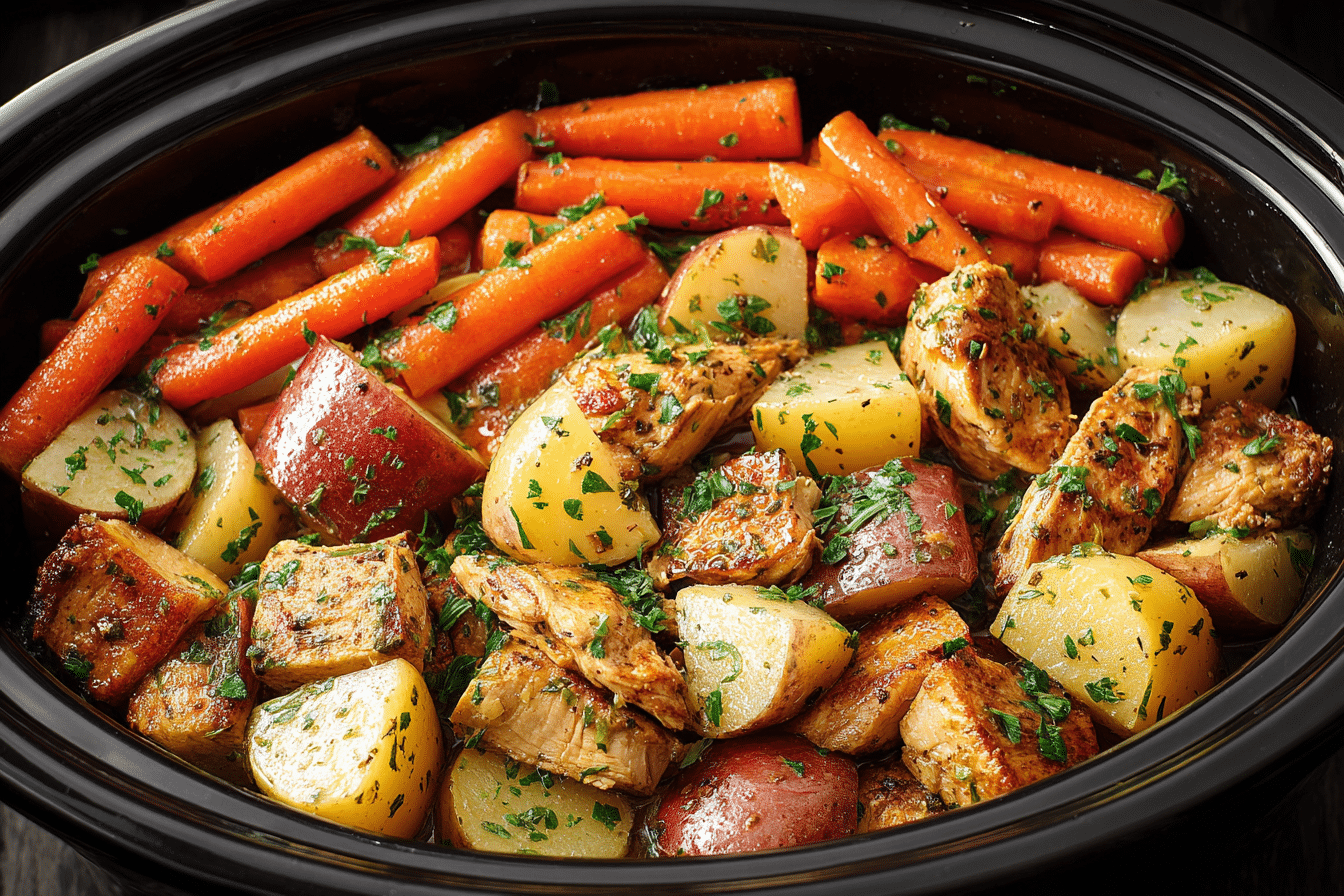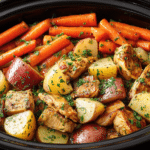 The slow cooking process transforms simple ingredients into a cozy, comforting meal with melt-in-your-mouth chicken, buttery potatoes, and vegetables that soak up every drop of garlicky goodness. With just a handful of pantry staples and a bit of prep, you’ll have a wholesome family dinner that delivers big flavor with minimal effort.