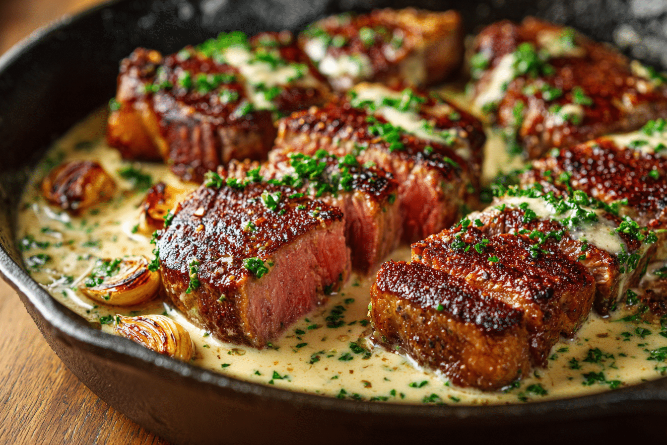 Garlic Butter Steak in Creamy Parmesan Sauce – Restaurant-Style at Home