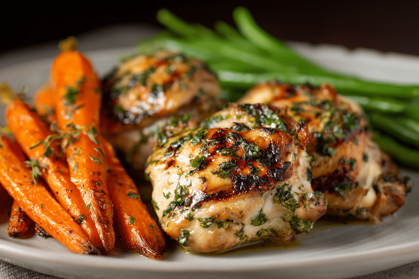 This plate shines thanks to its balance: savory chicken with crisp edges, silky roasted carrots with a hint of natural sweetness, and an herby butter sauce tying it all together. It’s perfect for home cooks who crave simple elegance in a dinner that doesn’t take all night to make.