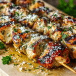 Grilled Ranch Garlic Parmesan Chicken Skewers bring together smoky char, creamy ranch flavor, sharp Parmesan, and fragrant garlic in every juicy bite. Cooked over open flames or a hot grill pan, these skewers develop a lightly crisp exterior while staying tender inside.