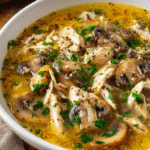 This soup is the kind of recipe that feels like a warm blanket. The use of rotisserie chicken not only cuts down on prep time but also infuses the broth with a slow-cooked, seasoned flavor that typically takes hours to develop. Mushrooms bring umami and texture, and when combined with aromatic vegetables, fresh herbs, and a splash of cream, the result is a cozy, restaurant-worthy bowl of soup — ready in under an hour.