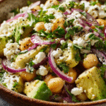 This Chickpea Feta Avocado Salad is the kind of dish that feels light but eats like a meal. Packed with creamy avocado, protein-rich chickpeas, tangy feta, and crisp vegetables, it’s the perfect blend of Mediterranean freshness and plant-powered nutrition.
