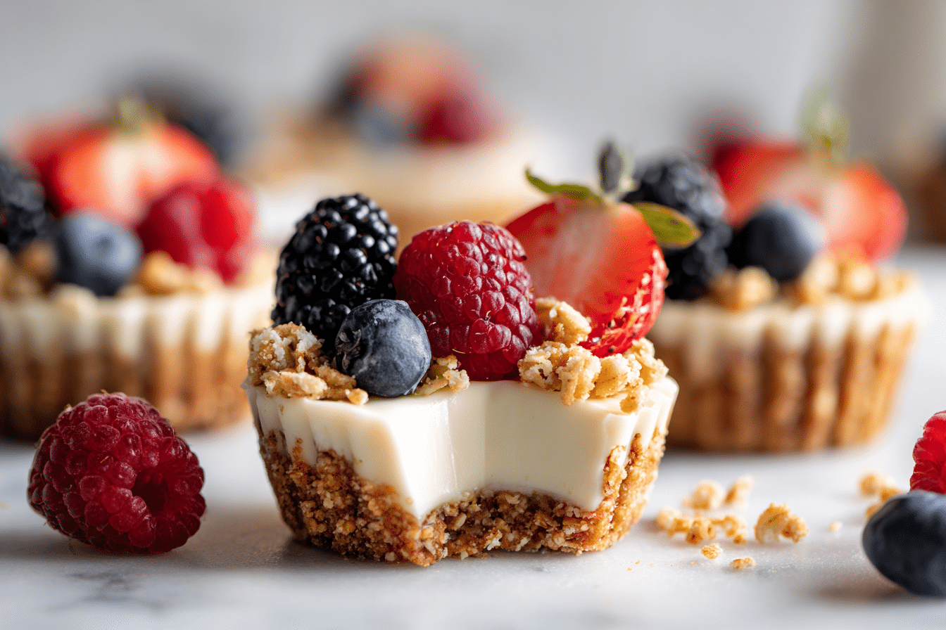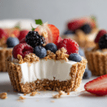 During warm months, frozen desserts made with fruit and yogurt often feel more refreshing than heavier sweets. The yogurt filling provides a creamy base, while the granola creates a sturdy outer layer that adds crunch and flavor. Fresh berries brighten the cups with natural sweetness and vibrant color.