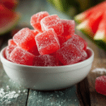 Watermelon has a delicate sweetness that pairs well with gentle citrus and natural sweeteners. When combined with gelatin and chilled, the juice transforms into soft gummies with a pleasant texture that holds its shape yet melts easily in the mouth. Each bite delivers a clean fruit taste that feels perfect for warm afternoons or light desserts.