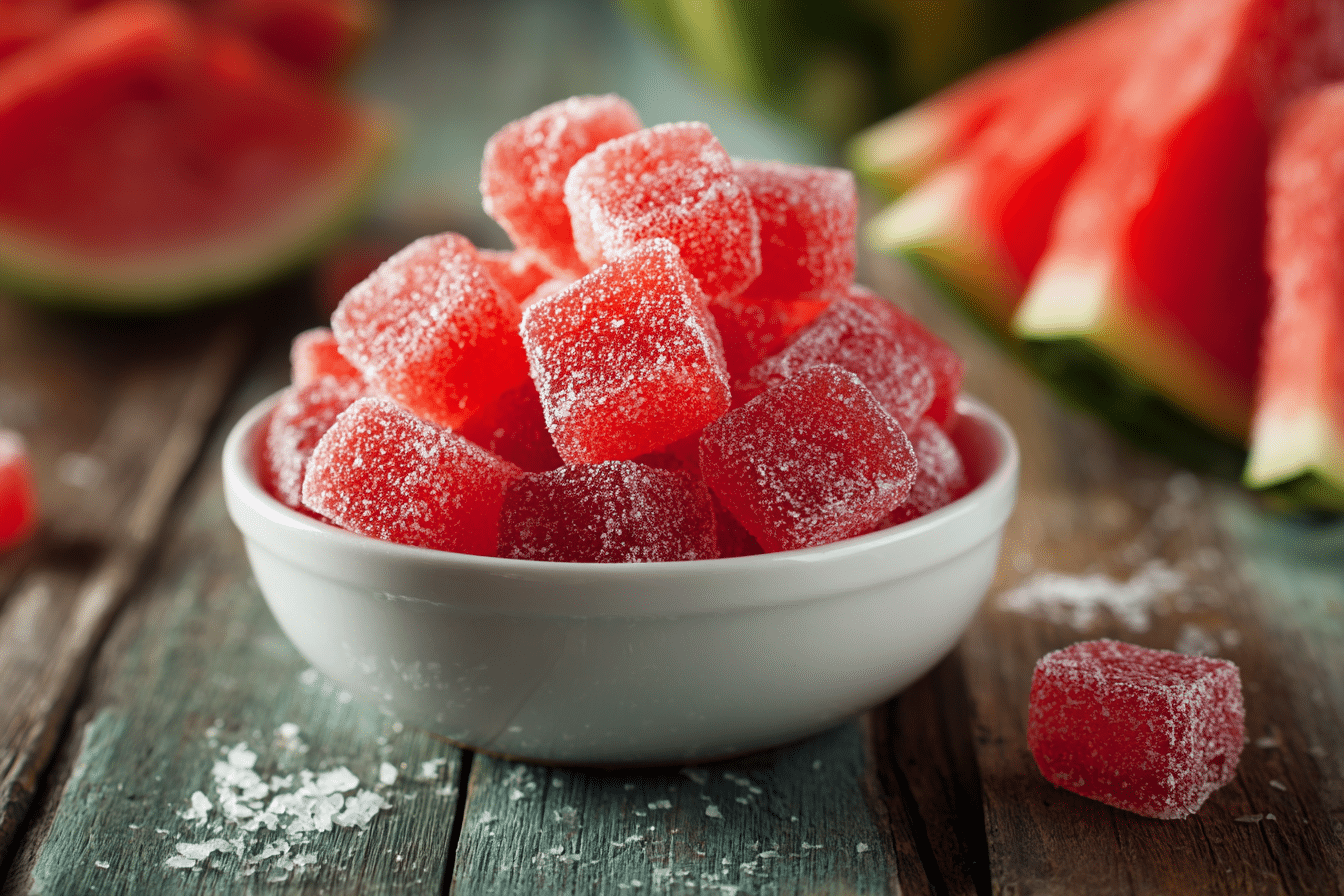 Gelatin is responsible for giving the gummies their characteristic chewiness. When dissolved in warm liquid and chilled, gelatin forms a soft gel that holds the mixture together. Unflavored gelatin is typically used because it allows the watermelon flavor to remain the focus.