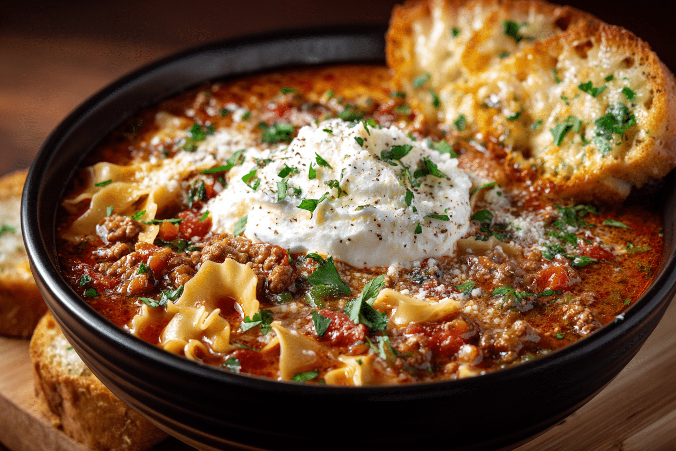A7: Yes — it has all the key lasagna flavors but in a cozy, slurpable format. The cheesy toppings give it that unmistakable lasagna vibe.