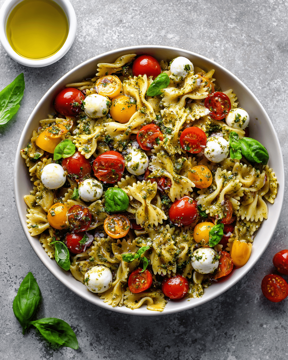 Bow tie pasta salad is the type of dish that fits any table — casual or fancy. It’s easy to make ahead, budget-friendly, and open to all sorts of variations. The combination of chewy pasta, crisp vegetables, and bold dressing means every bite is full of contrast and flavor.